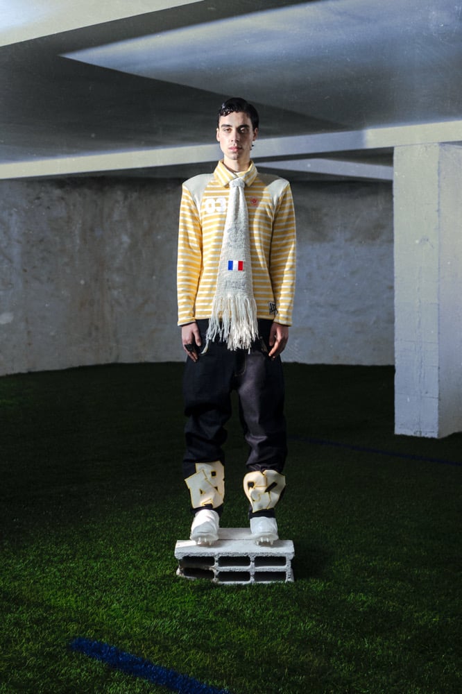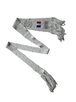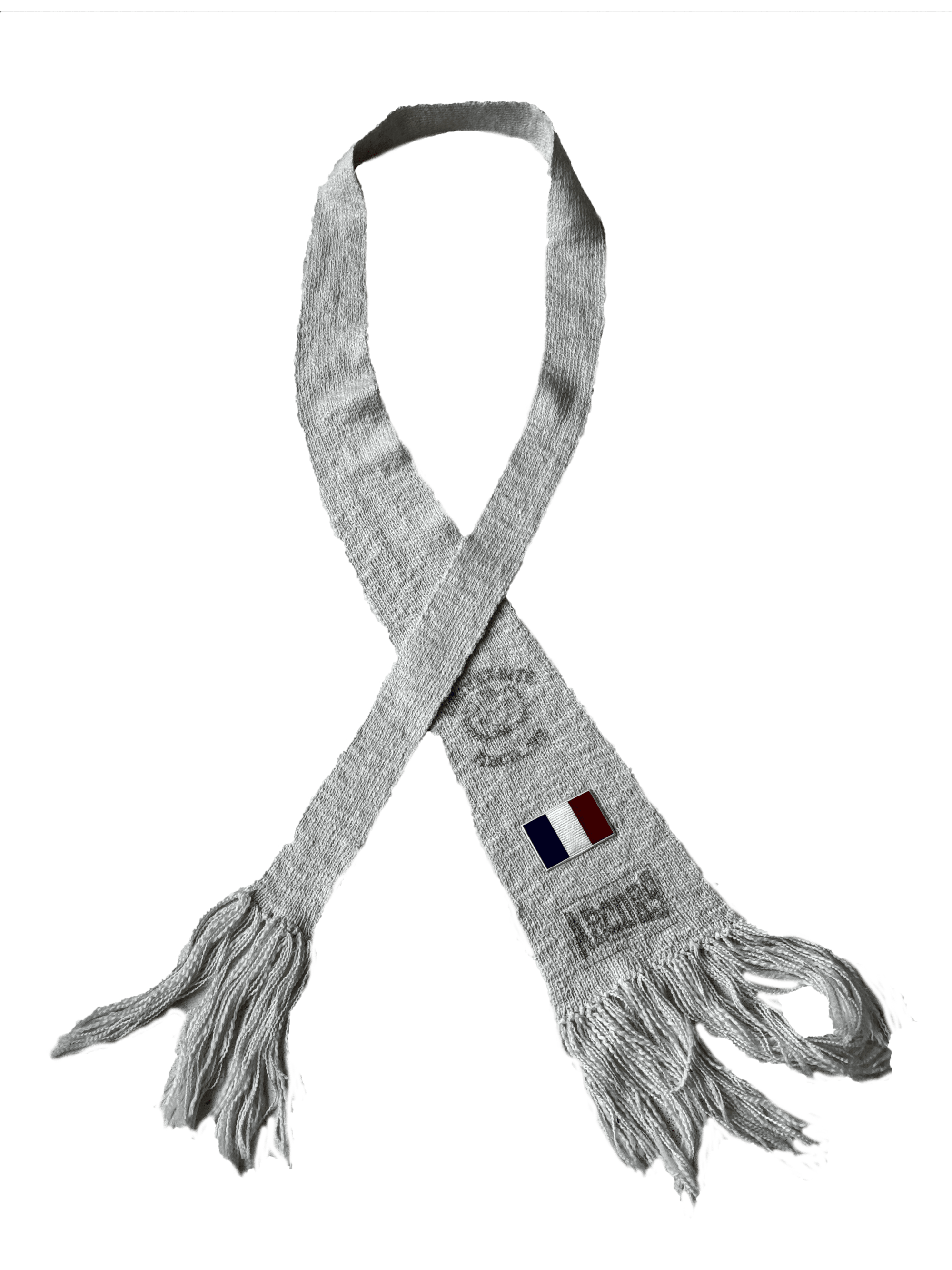 Wool scarf that can be tied like a tie. Fringed ends. “ABCDRS University” logo and French flag printed on certain models.