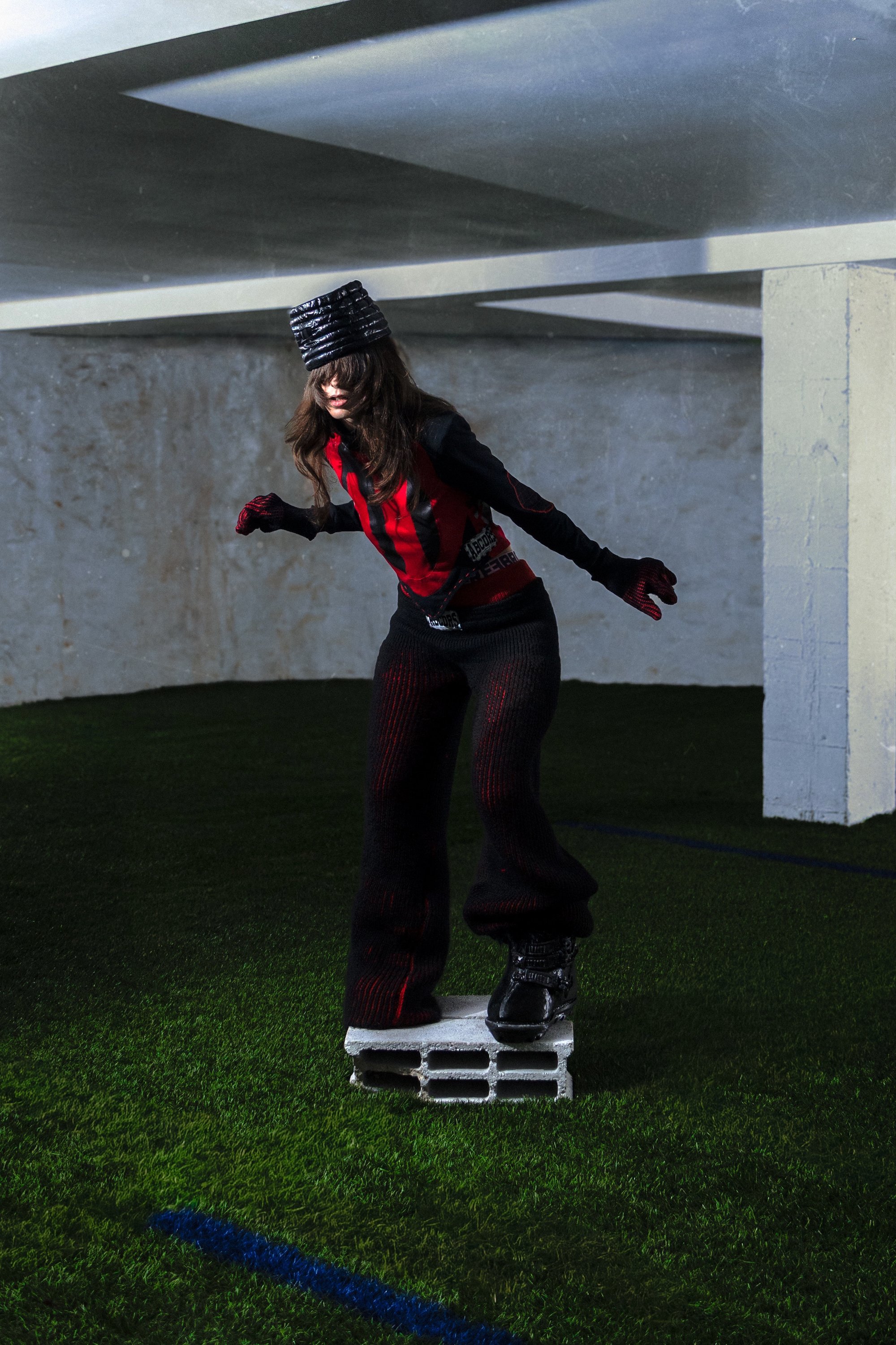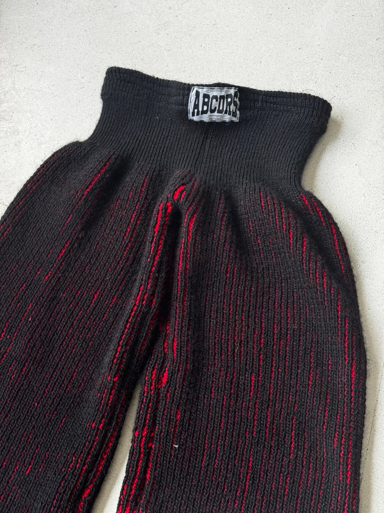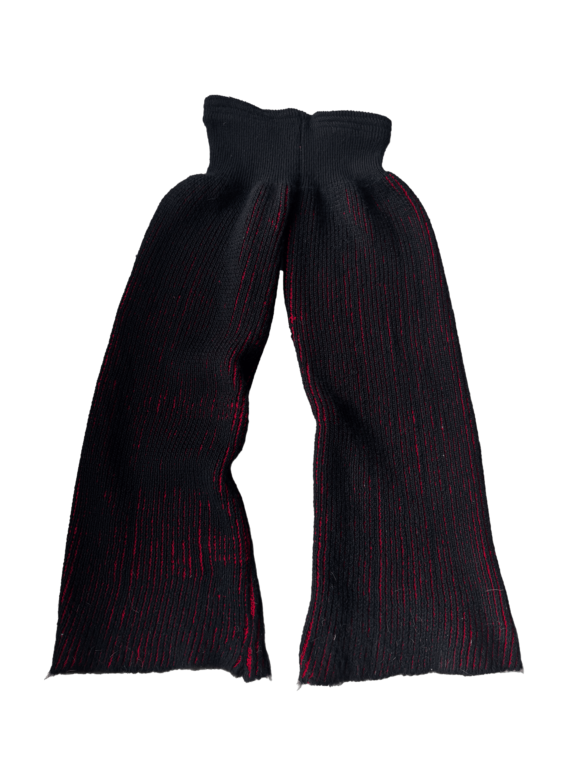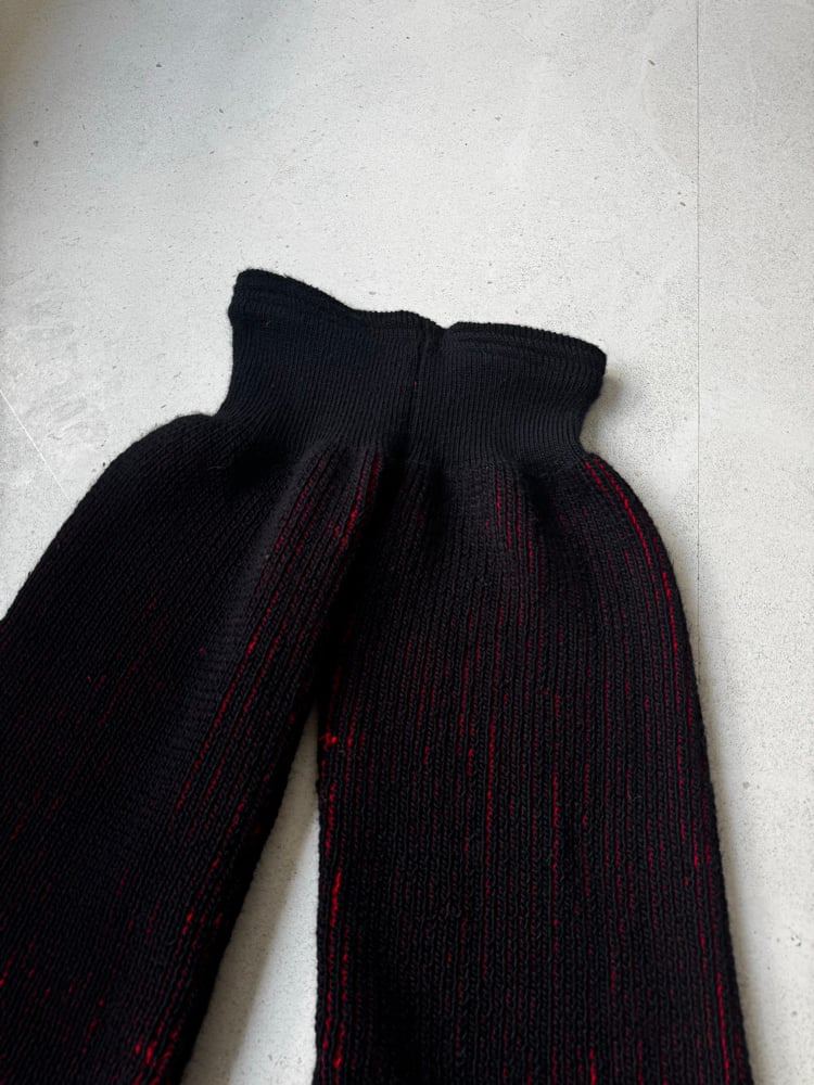 Pantalon 100% laine noire et rouge. Tricoté à la main à Paris.