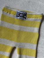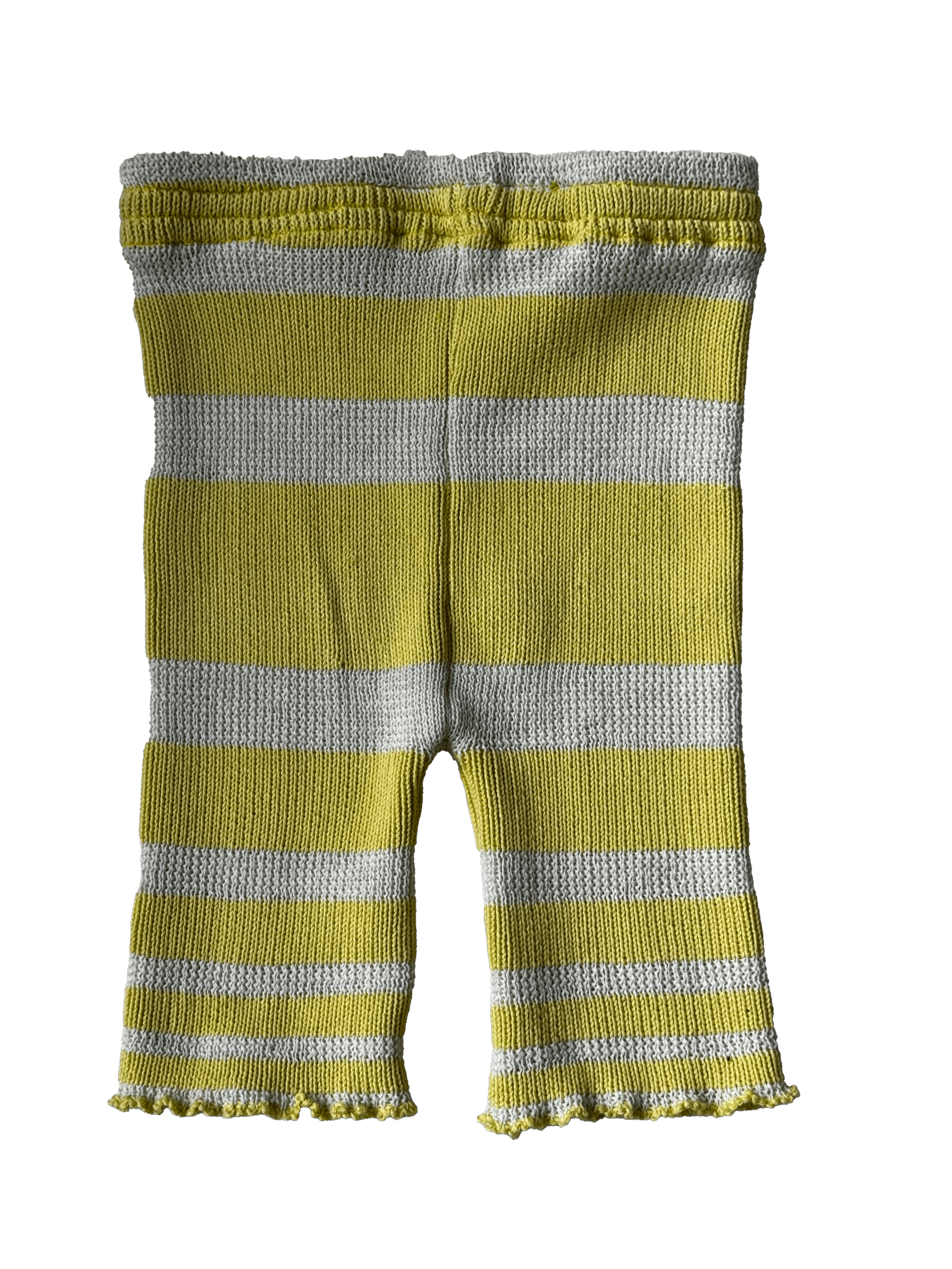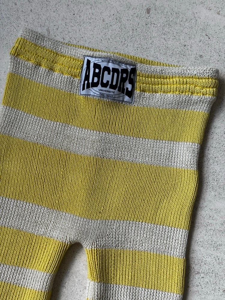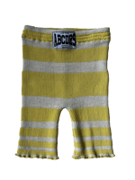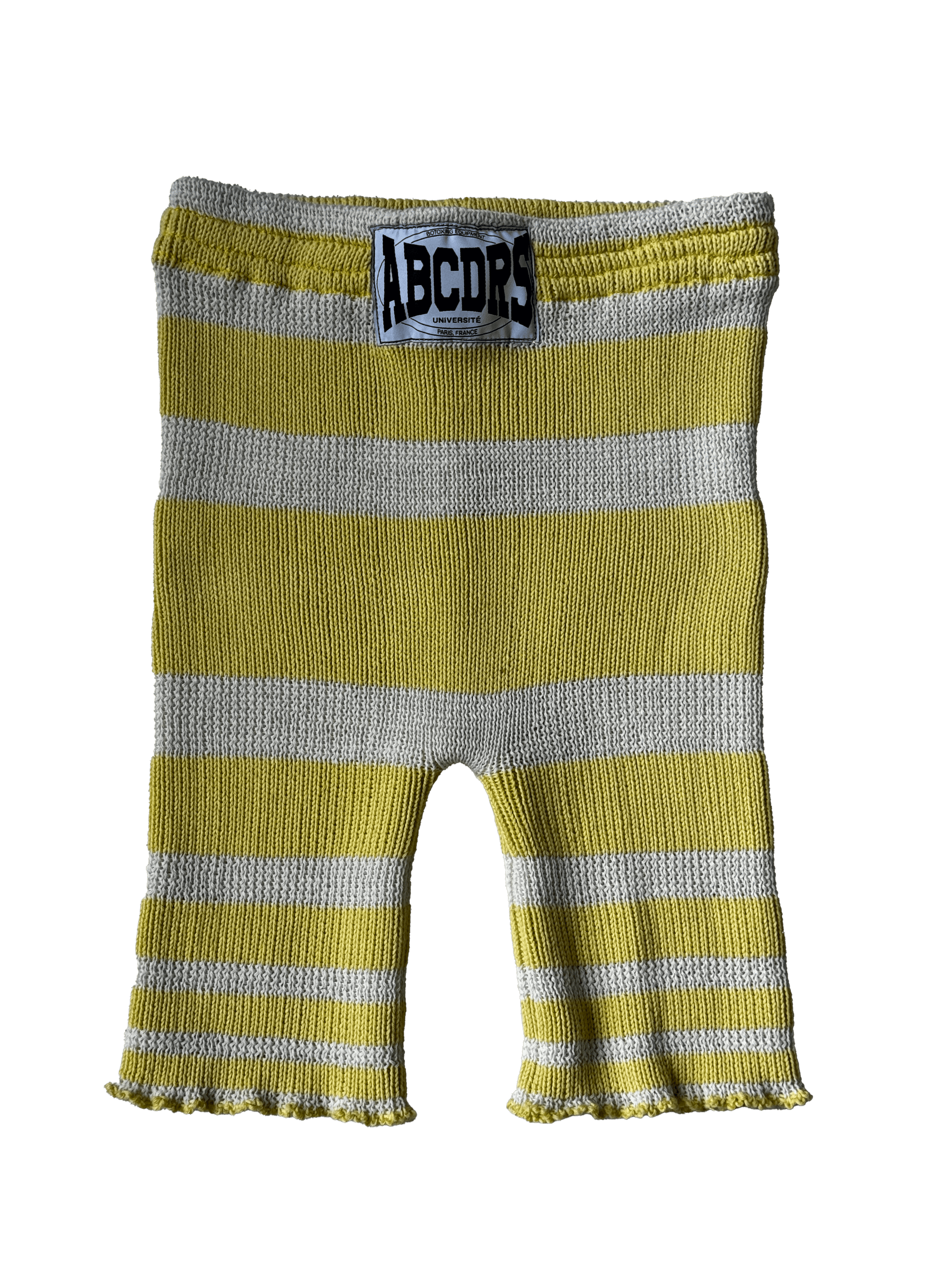 100% white and yellow striped wool cycling shorts. Hand-knitted in Paris.