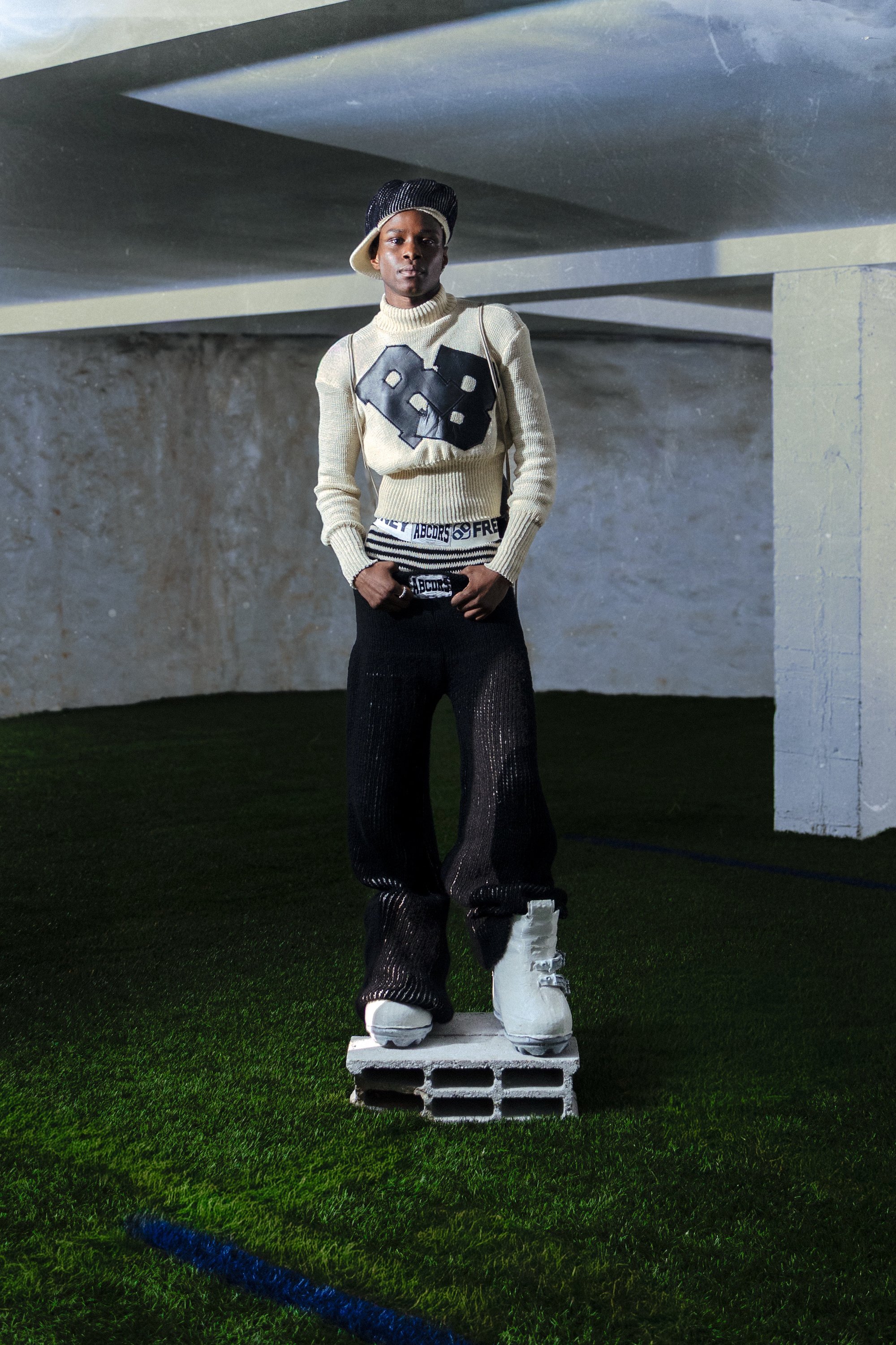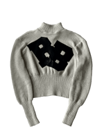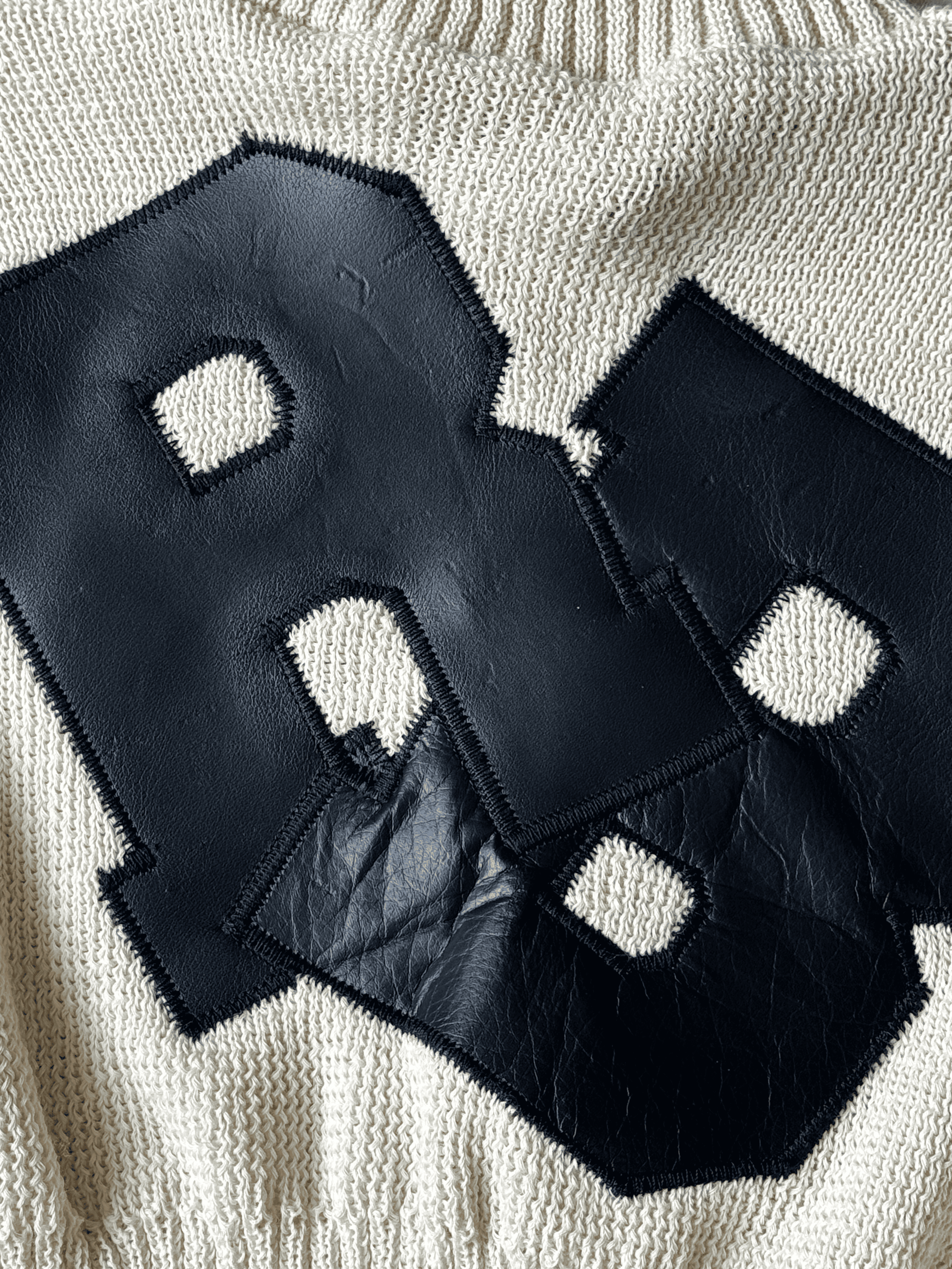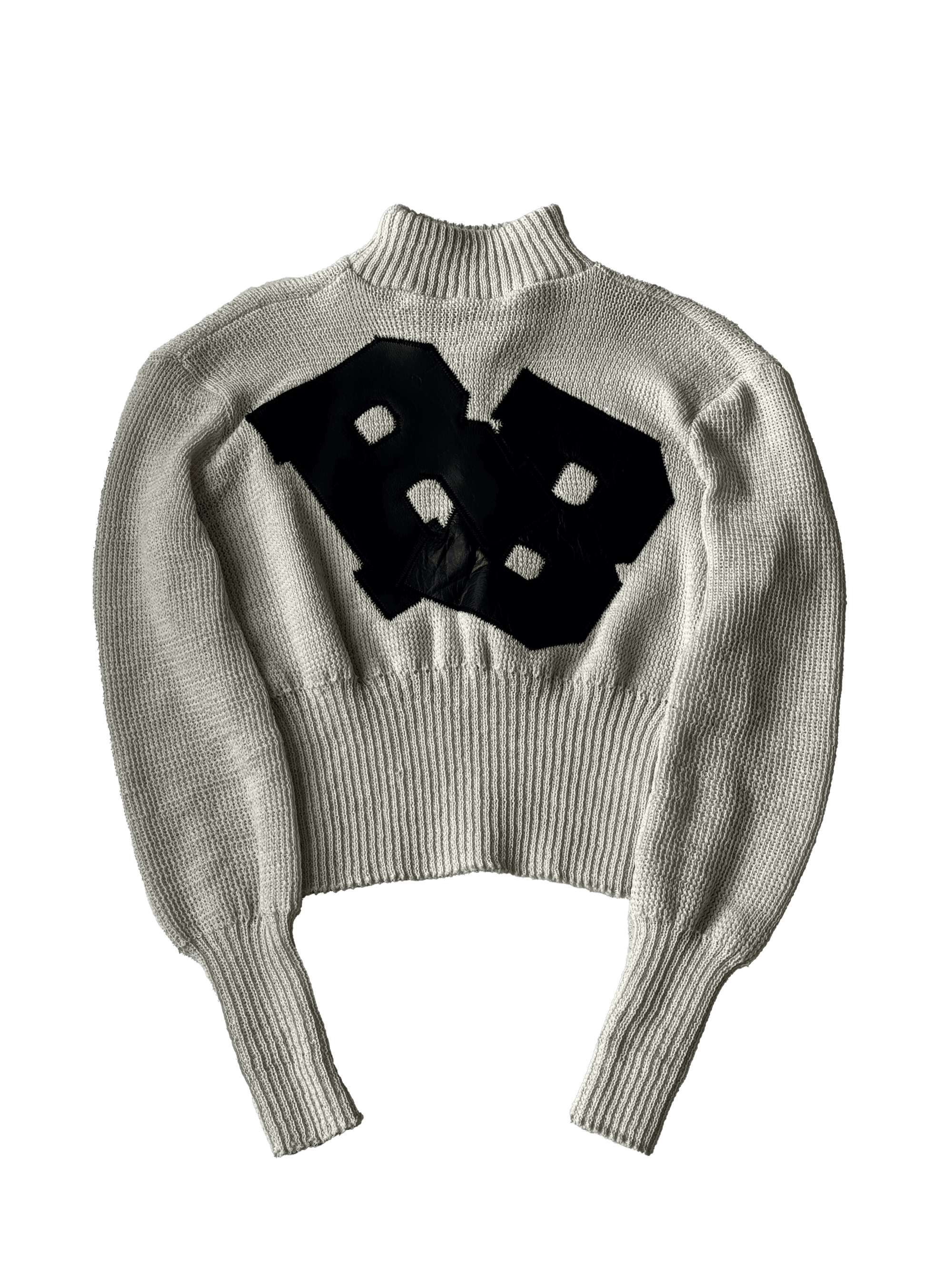 High-neck, cropped sweater with leather letter embroidery “RB” on the front.