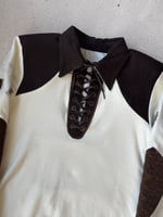 Sweat 100% coton et laine, blanc et marron. Cousu et tricoté à la main à Paris.